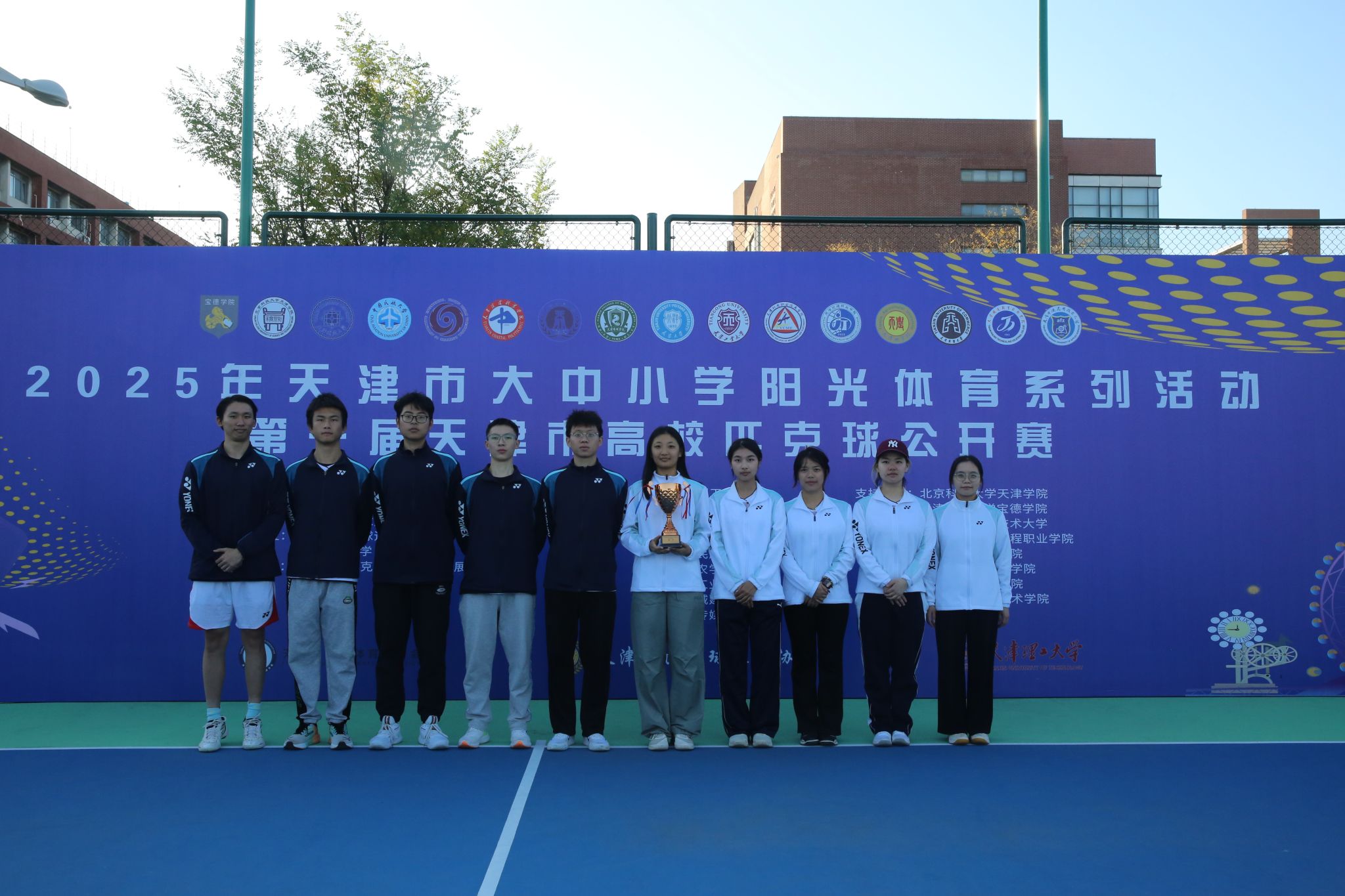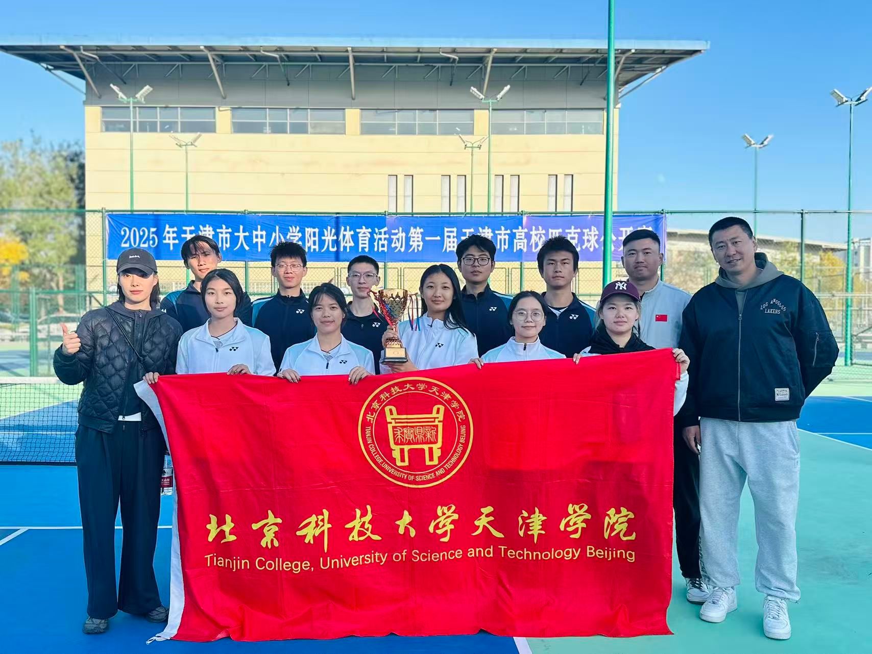 2025年11月1日,由天津市教育委员会、天津市学生体育联合会和天津市匹克球运动协会共同举办的2025年第一届天津市高校匹克球公开赛在天津理工大学匹克球场激烈开打,本次赛事吸引了全市17所高校,共计200余名运动员、教练员和领队踊跃参与。成人漫画由体育部赵文男、杨永康、程旸三位老师任教练员和10名球员组队参赛,经过激烈角逐,我校匹克球队获得天津市高校团体第三名(季军)。