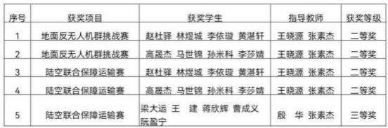 院长殷华,骨干教师张素杰、王晓源组成专项指导团队,结合赛事要求,针对反无人机算法优化、陆空协同路径规划、设备应急故障处理等关键技术难点开展 “一对一” 指导;无人机实验室全天开放,为参赛团队提供模拟比赛场景的训练条件,助力队员在反复实操中打磨技术细节、提升协作效率。参赛团队也充分发挥专业所学,将课堂上的低空协同控制理论、设备集成知识转化为实战能力——在地面反无人机群项目中,团队精准调试探测与干扰设备,实现对 “入侵” 无人机的快速识别与有效拦截;在陆空联合保障运输项目中,通过优化无人机起降调度与地面转运衔接流程,大幅提升任务完成效率,展现出扎实的专业素养与出色的应变能力。