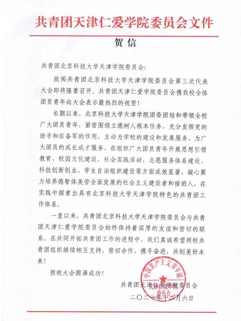 贺信共计12封,我们将在今后的工作中继续加强交流与合作,共同为推动共青团和高等教育事业的发展作出贡献!